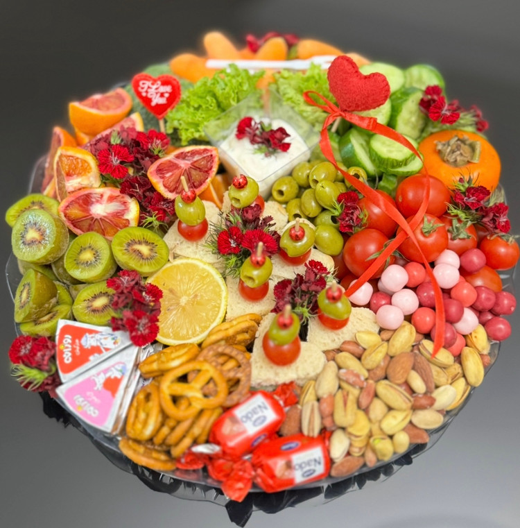 فلفل دلمه رنگی/ خیار/ گوجه /کدو/کرفس/هویج/ بروکلی/کل کلم/ لیمو/ زیتون/ خیارشور/سس مخصوص
